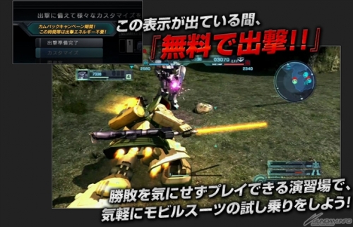 不屬於COME BACK活動的對象,每天在玩激戰任務的玩家,在「免費出擊時間帶」出擊,會發動設計圖報酬+1的特別獎勵。