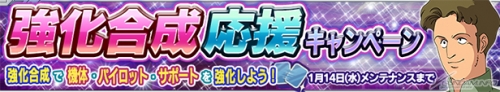 進行機體、駕駛員、輔助卡片強化合成時,個稀有度能獲得的經驗值將會變成平常的2倍。
