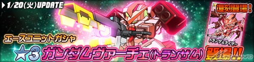 王牌機體轉蛋中,有「★3 高達華塞亞(TRANS-AM)」和「★3 TRANS-AM RAISER」為首的許多強力機體登場。。