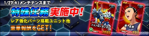 特殊任務「OP晶片奪還作戰」是以打到在限期地圖中登場的強力敵人,獲得「OP晶片」為目標。只要進入地圖執行任務,就能獲得「★2 神龍高達」和「★2 張 五飛」等豪華報酬。