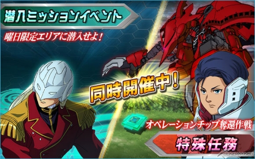 今天開始舉辦的「OP晶片奪還作戰」、「潛入任務活動」、「駕駛員合成經驗值上升期間」這3項活動,對玩遊戲都很有幫助。請務必把握機會來玩玩喔!