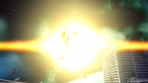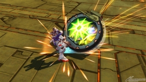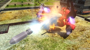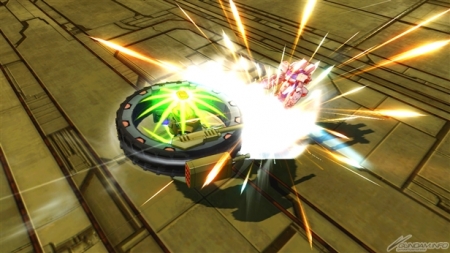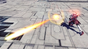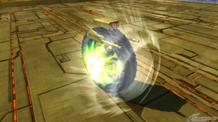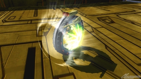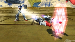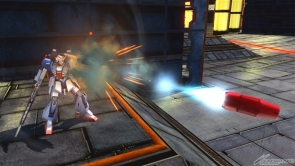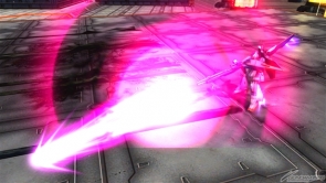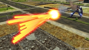 ▲爆破型衝擊高達狀態下的集氣主射擊,子彈很粗,所以容易命中對手。可以手動控制彎曲的方向,就拿來攻擊遠距離的對手吧。