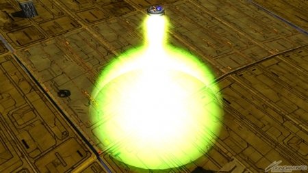 ▲特殊射擊武裝「光束盾牌【照射】」會對著地面用光束盾牌發射照射光束。照射光束會在命中的地點產生爆風。