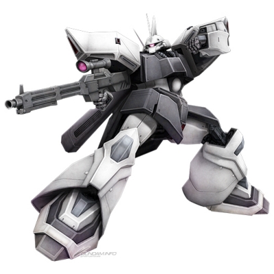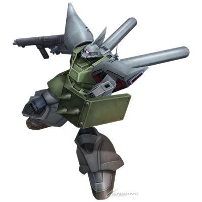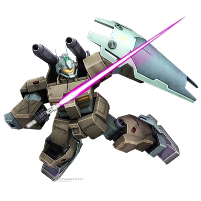 一年戰爭結束後,用吉姆加農和量產型太空坦克等等資料為基礎,集支援用MS大成所開發的機體。肩部光束加農和重裝甲,讓本機有著與鐳射大砲相似的外型。除了用光束加農發動的遠距離攻撃以外,還可以使用鐳射劍來做格鬥攻擊。新裝備「網子槍榴彈」可以有效阻止敵方移動。 |