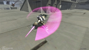 作為磁氣覆膜實驗機的MS。可以使用集氣武器,發動強力的攻撃。能夠對應近~中距離戰鬥,極好使用的一台機體。可以裝備集氣・超絕火箭砲(兩把)或集氣・光束步槍等。固有的戰鬥支援模組「磁氣覆膜」,其效果可以快速地交換武器及減輕落地時的反動。 |