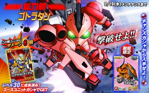 總力戰到2月19日(四)為止的限定期間內,有「高特拉坦」登場,在活動期間中進行任務的時候,有機會遭遇「高特拉坦」。