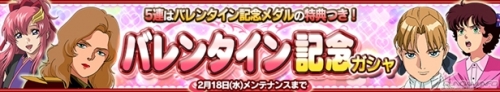 情人節紀念轉蛋是追加「SR 莉娜.亞敘塔」和「SR 拉克絲‧克萊因」等等12張新女性支援卡的特別轉蛋,5連轉蛋的特典是附贈紀念代幣。