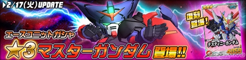 除了在王牌機體轉蛋中有「★3 天王高達」和「★3 命運高達」等等機體登場以外,還同時開始特殊任務「OP晶片奪還作戰」等等3個活動。