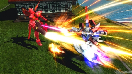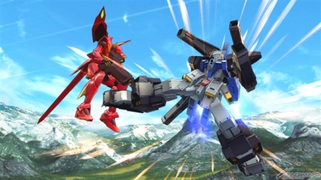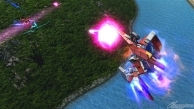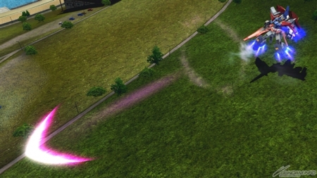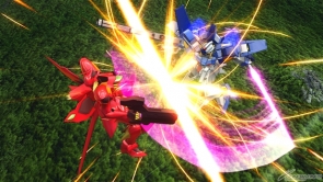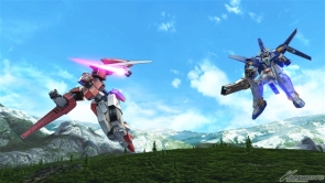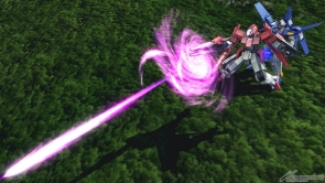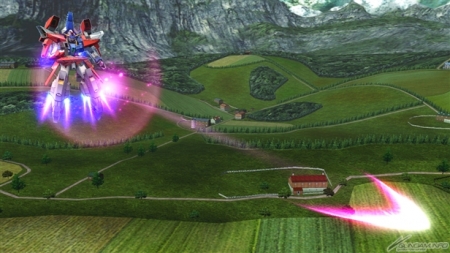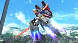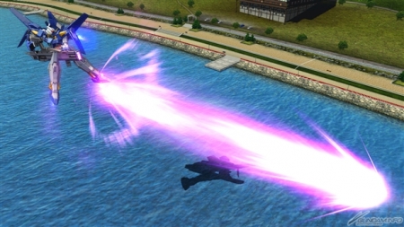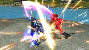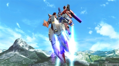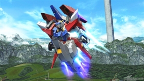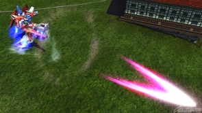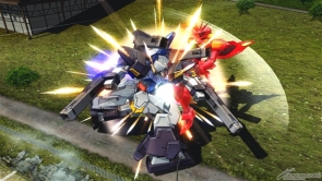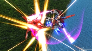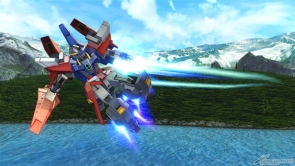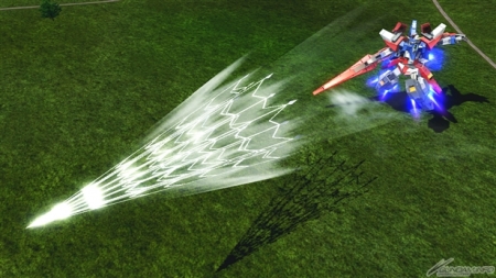 ▲特殊格鬥武裝「光波推進系統」是會隨著指令輸入進行不同方向的高速移動。輸入搖桿N會向自己機頭上方急速上昇,搖桿前後左右則會向對應方向前進。