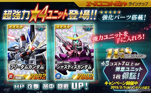 此外,王牌機體轉蛋追加了「★4 自由高達」等機體,白金駕駛員轉蛋追加了「★3 煌・大和」之外,「『機動戰士高達SEED系機體』★3以上確率上升活動」和「機體強化合成費用 減輕期間」也同時開始了。