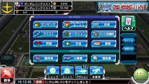 | GUNDAM CONQUEST 販售價格 : 免費下載、部分道具收費 對應機種 : iPhone 4、iPhone 4S、iPhone 5、iPhone 5s、iPhone 5c、iPad(第3世代、第4世代)、 iPad mini、iPod touch(第5世代),iOS4.3以上、Android 2.3以上 ※部份機種除外 上架開始 : 2013年12月10日 |