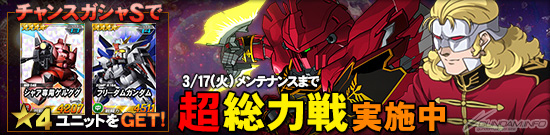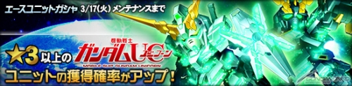 活動期間中,「王牌機體轉蛋」以及「11連王牌機體轉蛋」中出現的『機動戰士高達UC』系列機體,「★3」以上機體的釋出機率將會上升。