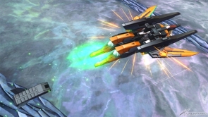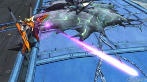 ▲格鬥用武裝集氣後,可以將攻擊變成射出「GN浮游剪型BIT」,對敵機發動突襲。