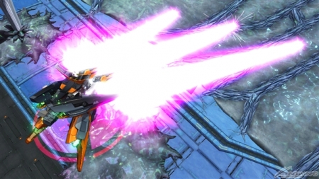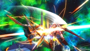 ▲爆發攻擊是「拓展未來的力量」。使用GN劍步槍及GN浮游剪型BIT發動連續格鬥攻擊後,
