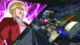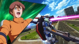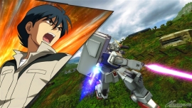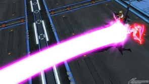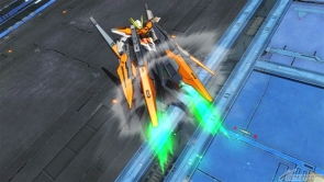 ▲特殊格鬥武裝「GN推進器」會向對手快速地靠近。搖桿控制的方向會改變行經軌道,搖桿不動或是往前會向對手直直前進,搖桿左右會斜向前進,搖桿往後就是往自機後方移動。