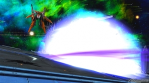 ▲特殊射擊武裝會呼叫「量子型00」,搖桿方向對應不同的攻擊方式。搖桿左右是用「GN劍V・步槍模式」放出照射光束斬擊前方、搖桿上下或是不動,量子型00會量子化靠近敵機,使用「GN劍V」發動格鬥攻擊。