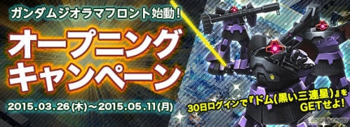 GUNDAM DIORAMA FRONT 遊戲類型 : 場景模擬對戰遊戲 遊戲平台 : Windows® PC(Vista / 7 / 8 / 8.1)專用 服務環境 : PC客戶端 / BANDAI NAMCO ID 正式服務 : 2015年3月26日(四)開始 開發・營運商 : BANDAI NAMCO ONLINE 預定收費模式 : 基本遊玩免費(※部分收費內容) |