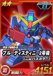※「★2 藍色命運2號機(尼姆巴斯配色)」、「★2 藍色命運3號機」、「★2 高達艾斯亞」會以Lv20已成長的狀態配送。