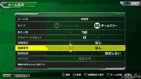 玩家配對的房間設定,戰績保存可以選擇「有」 / 「無」。如此一來便不用再譯勝率,可以輕鬆地享受對戰的樂趣。