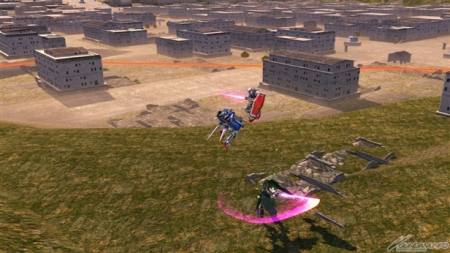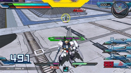 ▲投擲GN光束短刀攻擊的副射擊,輸入方向鍵前+副射擊,會變成一邊前進一邊投擲短刀的攻擊方式。