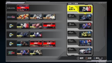 上述模式機體選擇畫面中,可以消耗「GP」來嘗試使用。