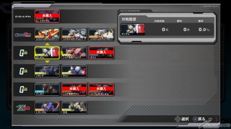 可以閱覽全機體的使用次数、勝利數、勝率。