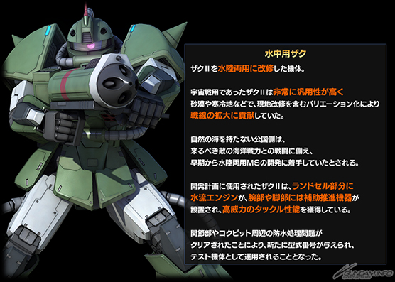BANDAI NAMCO GAMES好評提供PS3専用線上戰鬥動作遊戲「機動戰士高達 激戰任務」,今天6月18日(四)起開始可以獲得「水中用渣古」的設計圖。