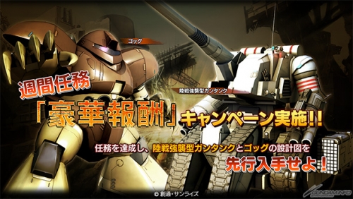 週間任務「豪華報酬」特別活動中,只要在期間出擊便可累計「CP(活動點數)」,CP達到一定數量就可以獲得特別報酬。報酬內可以搶先取得新活動機體「陸戰強襲型太空坦克」及「戰蟹(愛爾蘭魔蟹)」的設計圖等等,準備了相當豐富的豪華報酬。