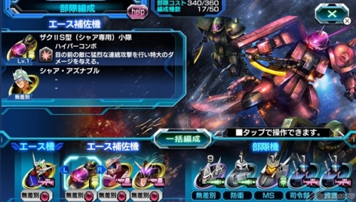 【王牌補佐機】每個部隊最多3機編成,可以發動「MS技能」。