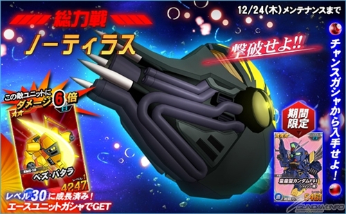 打倒「羅迪拉斯」的時候,還可以抽機會轉蛋,除了有機會獲得「★3 量產型高達F91(哈里遜機)」等等以外,還在王牌機體轉蛋中追加了可以對「羅迪拉斯」發揮6倍攻擊力的「★2 比達・巴達拉」。