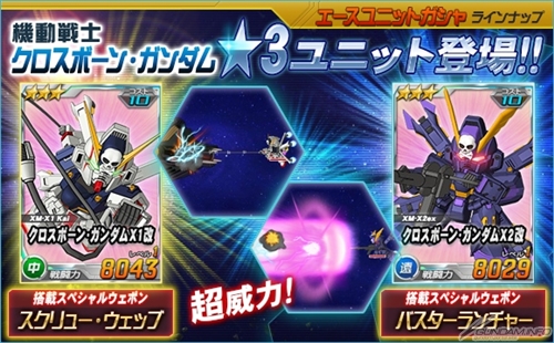 今天起在王牌機體轉蛋中追加搭載強力特殊武裝的「★3 骷髏高達X1改」、「★3 骷髏高達X2改」。