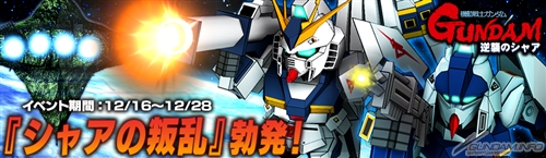 以『機動戰士高達 逆襲的馬沙』為藍本的活動目前正舉辦中。除了「ν高達」和「沙煞比」等玩家熟悉的機體之外,報酬中還可以獲得遊戲内初次登場的「Hi-ν高達」。千萬不要錯過這個難得的入手機會。舉辦期間預定到12月28日(一)。