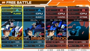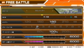 「FREE BATTLE Ver.1.00」是使用初期性能的可操作遊玩機體,自由設定關卡、
