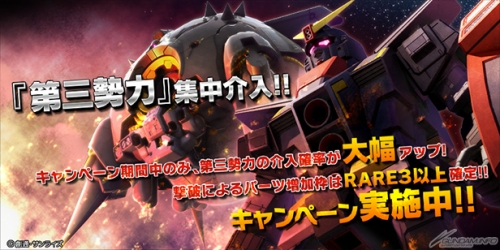 今天起開始本活動,在活動期間中,大幅提高第三勢力「阿普撒拉斯II」和「重高達」的介入機率。