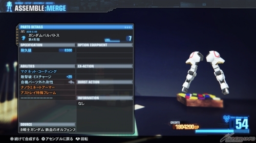 ※「高達破壞者3」的「HG 獵魔高達(第4形態)」和「HG Ζ高達」零件&武器資料都可在遊戲中獲得。