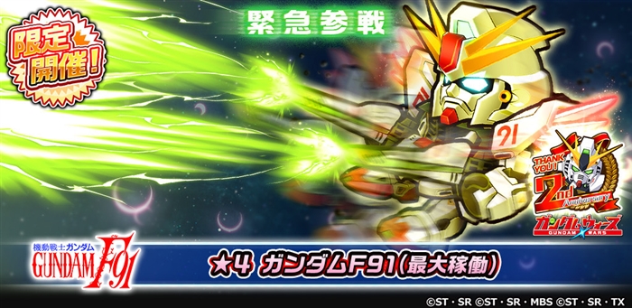 為了紀念2週年舉辦了期間限定特別轉蛋。第1彈是新機體「★4 高達F91(最大運轉)」登場。請務必把握這個機會。