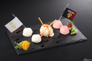 聯名餐點有以獨角獸高達設計的甜點「獨角獸高達,站立於即時戰線!」(含稅1,080日圓)。