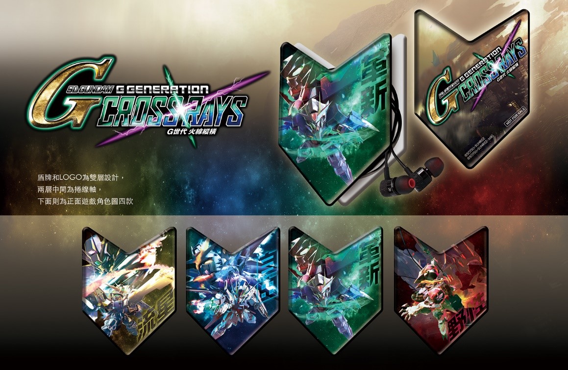 凡購入實體首批《SD GUNDAM G世代 火線縱橫》繁體中文版將可獲得《SD GUNDAM G世代 火線縱橫》特製耳機捲線器,以代表「流星、自由、革新、野性」的四架人氣機體為設計,唯有購入繁體中文實體版的玩家才有機會入手!