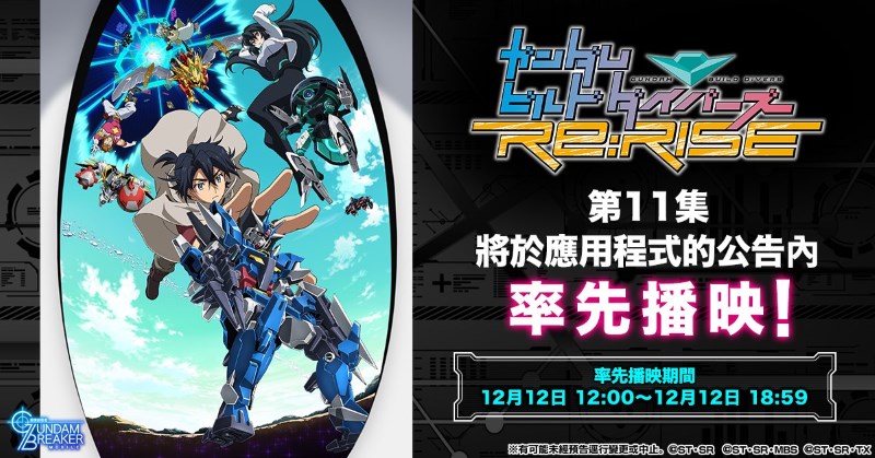 針對iOS/Android的智慧型手機遊戲應用程式「高達創壞者 MOBILE」中,已決定搶先播出『高達創戰潛行者Re:RISE』第11集。