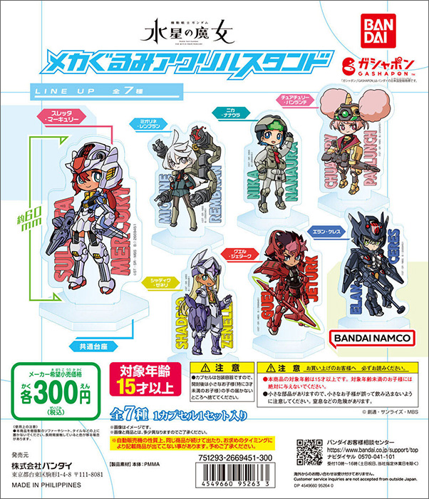 GASHAPON商品「『機動戰士高達 水星的魔女』機體玩偶壓克力立牌」,於4月第4週在日本各地轉蛋自動販賣機等處發售。售價為1次300日圓(含稅)。