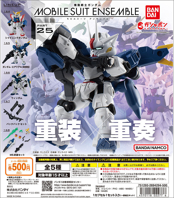 以武裝造成的輪廓變化為主題的「MOBILE SUIT ENSEMBLE」系列第25彈,將於9月第3週在日本國內轉蛋自動販賣機等處發售。售價為1次500日圓(含稅)。