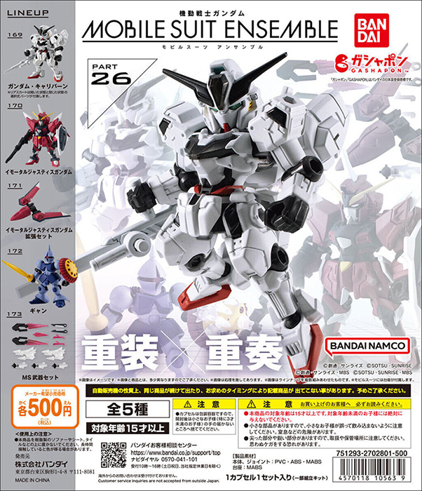 以武裝造成的輪廓變化為主題的「MOBILE SUIT ENSEMBLE」系列第26彈,將於2月第4週起在日本國內轉蛋自動販賣機等處陸續發售。售價為1次500日圓(含稅)。