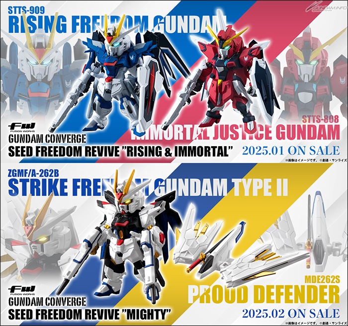 「FW GUNDAM CONVERGE SEED FREEDOM REVIVE」決定發售”RISING&IMMORTAL”和”MIGHTY”。”RISING&IMMORTAL”預定於2025年1月發售,價格為2,970日圓(含稅)。”MIGHTY”則預定於2025年2月發售,價格為2,750日圓(含稅)。