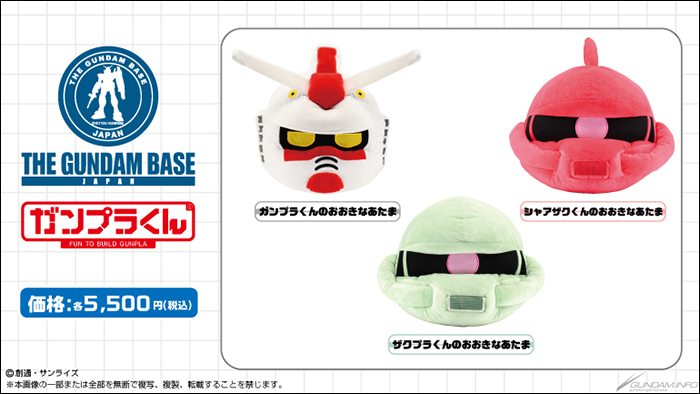 玩偶「高達模型君的大頭娃娃」「渣古模型君的大頭娃娃」「馬沙渣古君的大頭娃娃」決定於10月19日(六)起在高達模型綜合設施「THE GUNDAM BASE」各門市發售。價格為各5,500日圓(含稅)。
