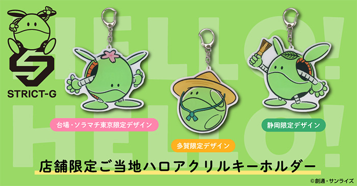 「STRICT-G『機動戰士高達』在地哈囉壓克力鑰匙圈」共3種,決定於12月28日(六)起,在STRICT-G各門市限定發售。售價為各1,320日圓(含稅)。