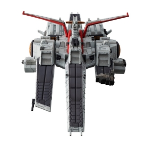 激戰中被擊破的左舷彈射艙及本船艦後面的損傷部位均真實重現,還附有在故事結尾處活躍的四架 MS 迷你模型。