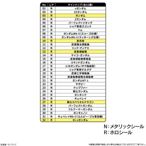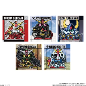 「高達」「武者頑駄無」「騎士超越之龍」等共32種商品陣容。貼紙背景除了以「元祖SD高達」包裝背面為形象的背景外,還有5種閃亮貼紙,收錄橫井畫家新繪插圖的「Hi-ν高達」等,款式豪華。