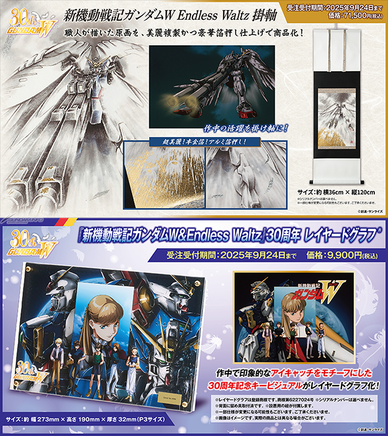 “機動戰士高達W 無盡華爾茲”掛軸“和”機動戰士高達W & 無盡華爾茲 30 周年分層圖“現已在 A-on STORE 和 Premium Bandai 的”Sunrise Store“接受訂單。