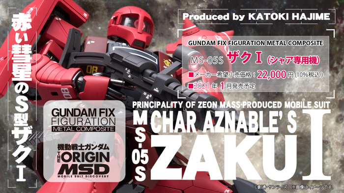 由以壓鑄和ABS為主要材質的完成品模型「GUNDAM FIX FIGURATION METAL COMPOSITE」(G.F.F.M.C)推出,「MS-05S 渣古I(馬沙專用機)」將於2021年1月發售。售價為22,000日圓(含稅)。