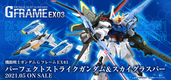 在骨架上裝上裝甲來完成的高精度可動高達公仔系列「機動戰士高達 G FRAME EX03 全備型突擊高達&空中霸王」,決定於5月發售。售價為4,900日圓(未稅)。